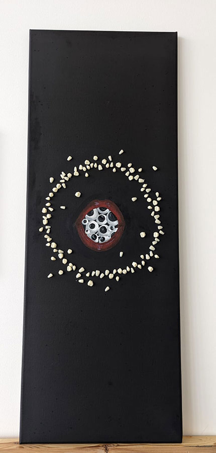 Niamh Wyatt is an artist based is Birmingham, UK. Working primarily with paint but not exclusive to it. She is critically engaged with the idea of horror and the fear of the unknown. The horror genre, especially the 90s horror era heavily inspires her practice and has done since her early years of being an Artist. Her practice tries to explore the beauty within darkness and highlighting the attraction of ideations that can be deemed unpalatable.