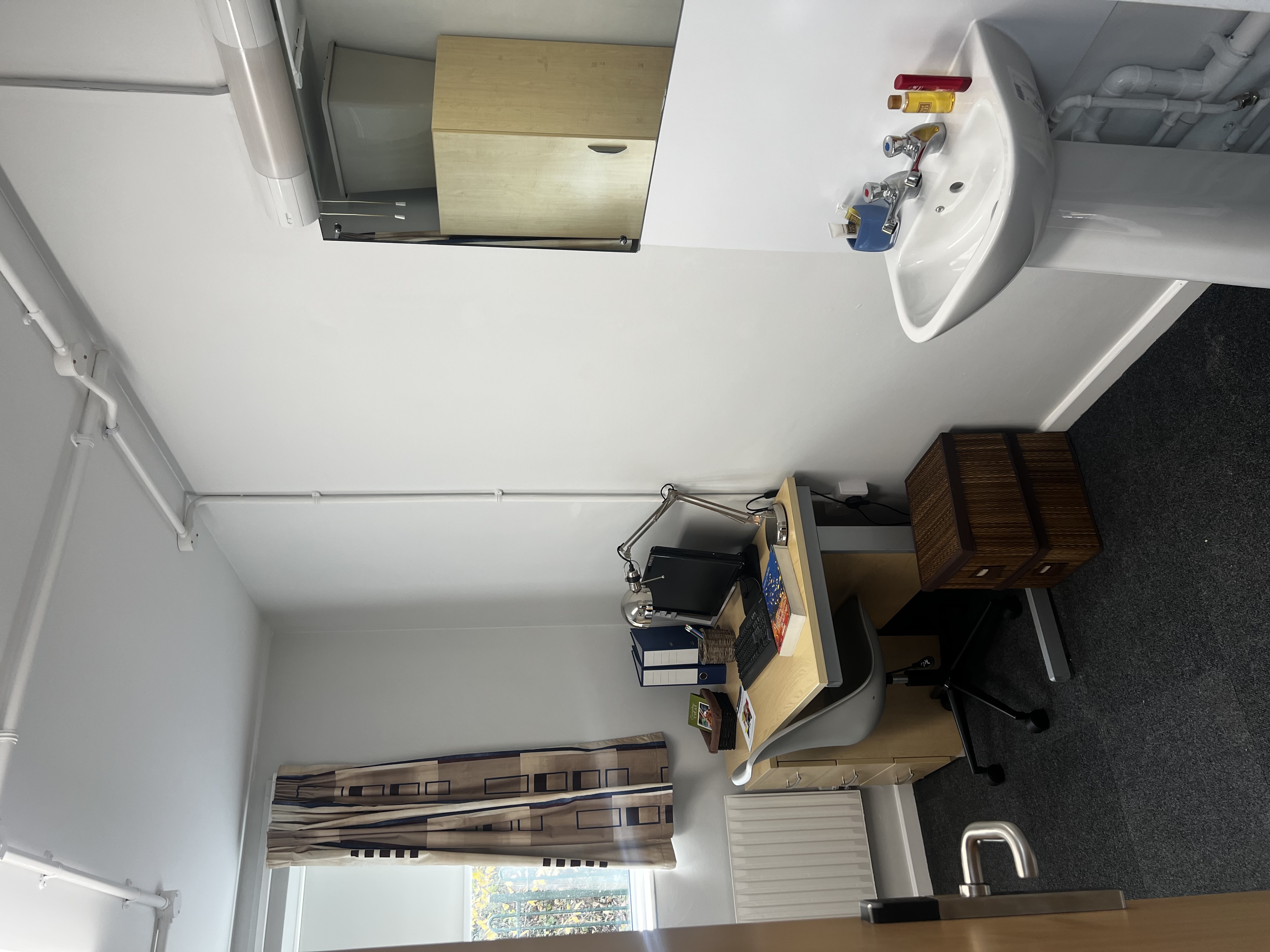 - In your bedroom you can expect to find a bed, mattress, desk, chair, bookshelf, wardrobe, curtains or blinds for privacy, a bin and hand basin.